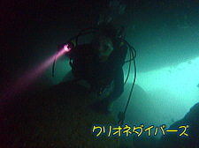 写真:;洞窟の前には穴をふさぐほどのキンメモドキの大群!