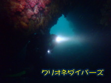 洞窟の穴を塞ぐほどの大群キンメモドキの群れ!ここにアジの群れが加わり、なおかつカンパチVSアジの攻防戦が繰り広げられて迫力のある光景でした。