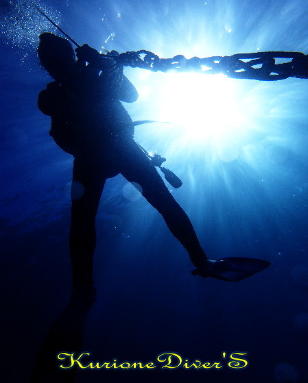 ロープ浮上。太陽の光を入れて撮るとこんな感じに・・・。神秘的(^^v