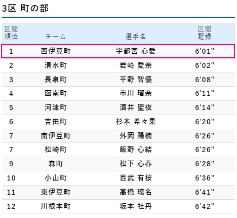 西伊豆で3区、区間賞をとったのは心愛が初めてという!おめでとう。