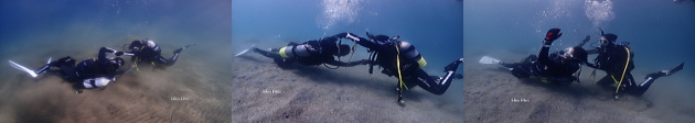 実技講習では、ダイブプロフェッショナルマニュアルに記載されていることが実際にできるまで練習し、実技試験を行います。